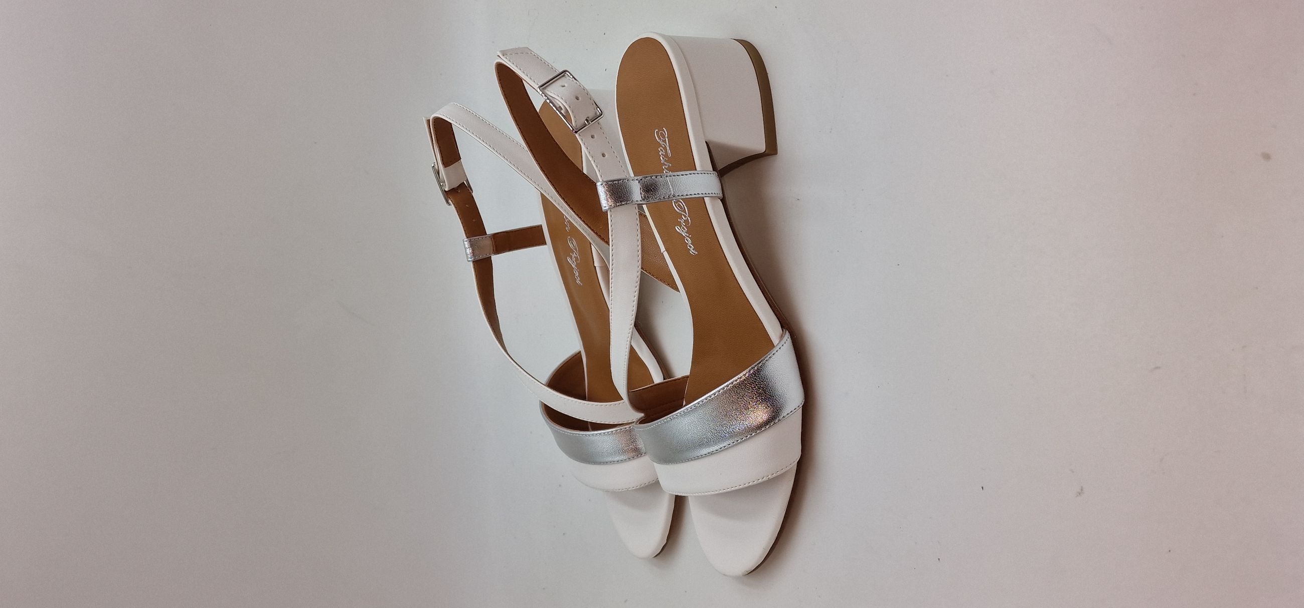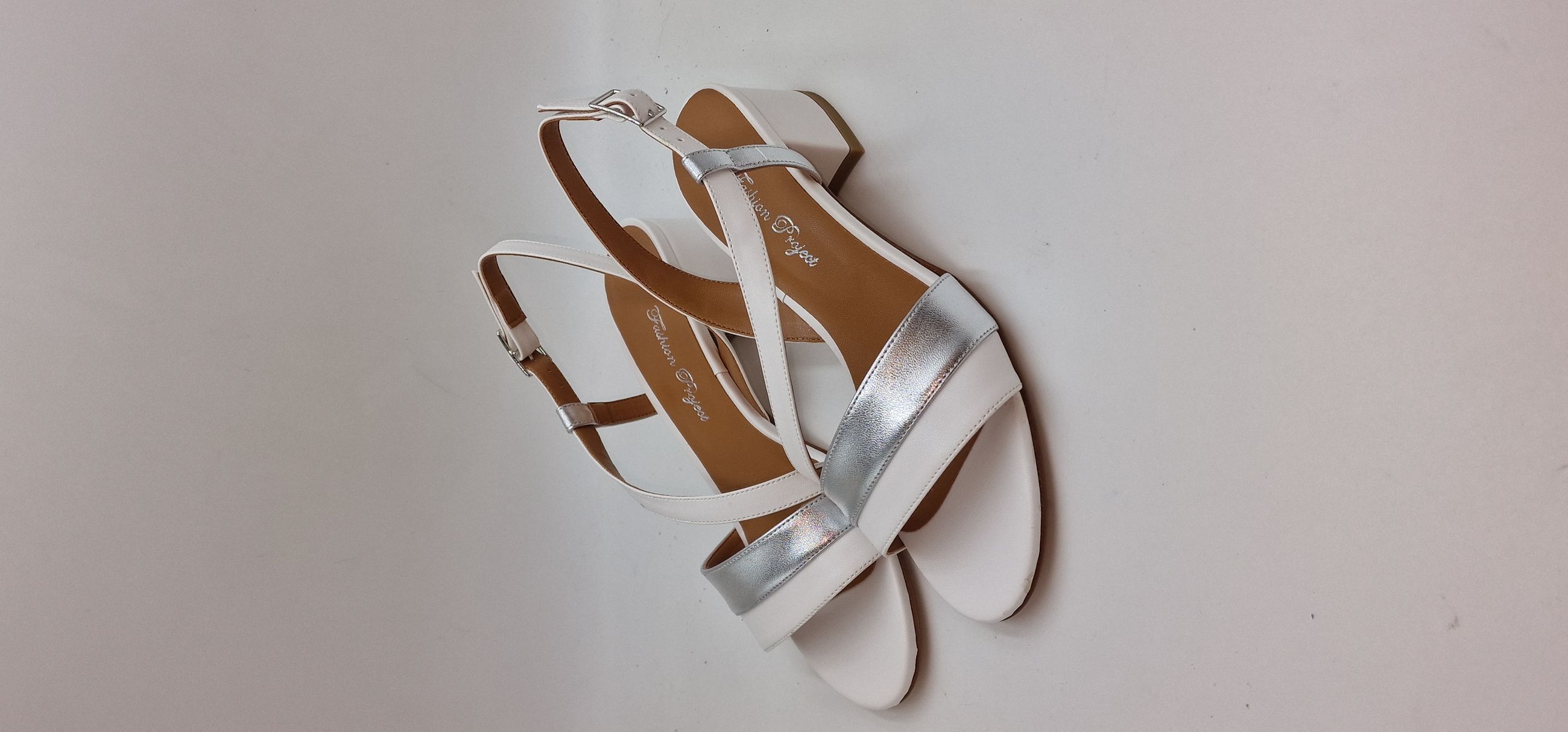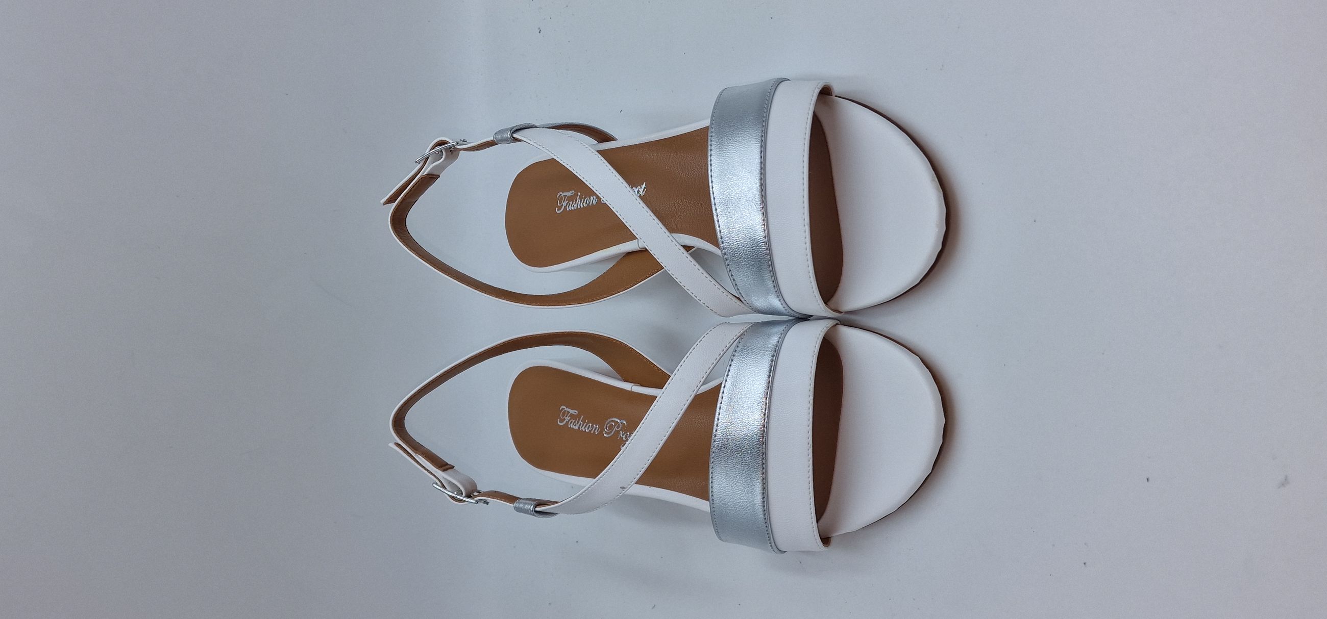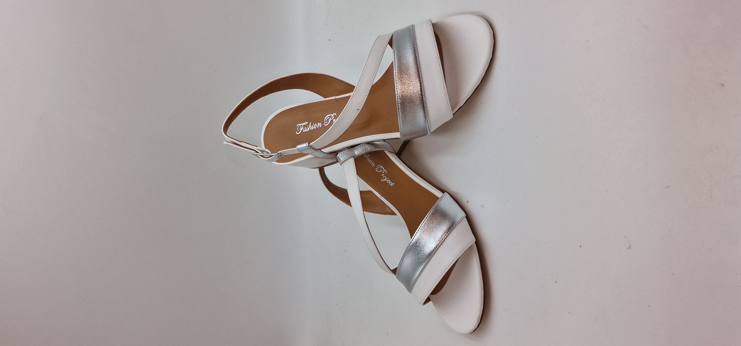 SANDALO IN ECOPELLE BIANCA E LAMINATO ARGENTO, FASCIA TRASVERSALE, FODERA IN ECOPELLE,