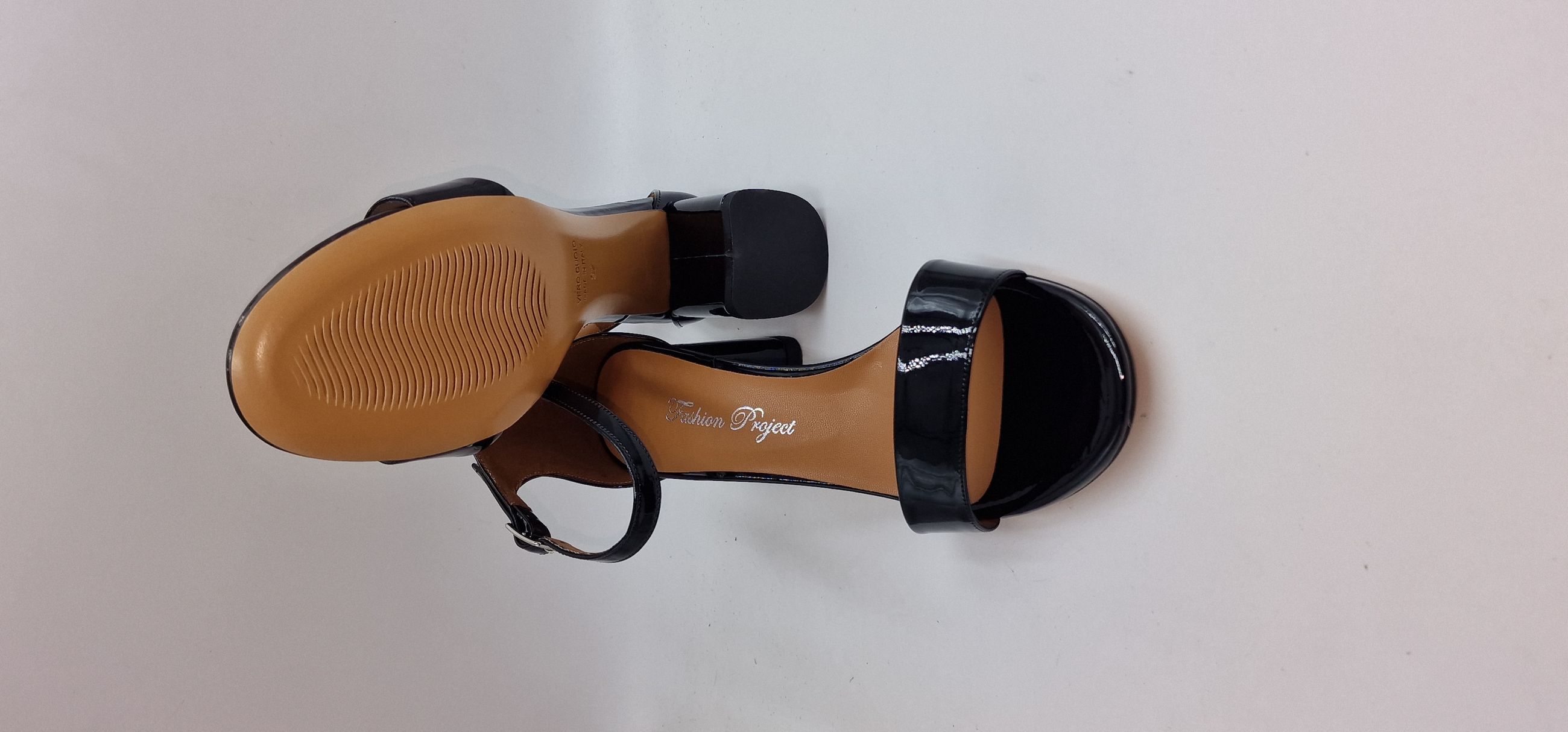 FODERA IN ECOPELLE, FONDO IN CUOIO TACCO 6,5 CM FASCAITO IN VERNICE ECOLOGICA