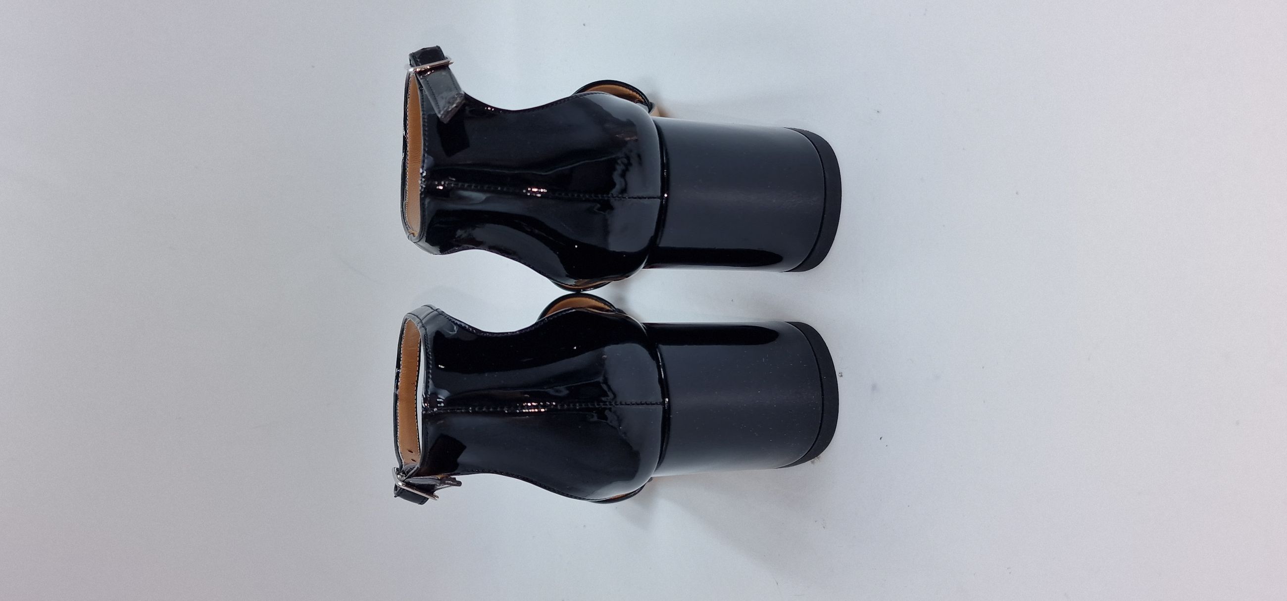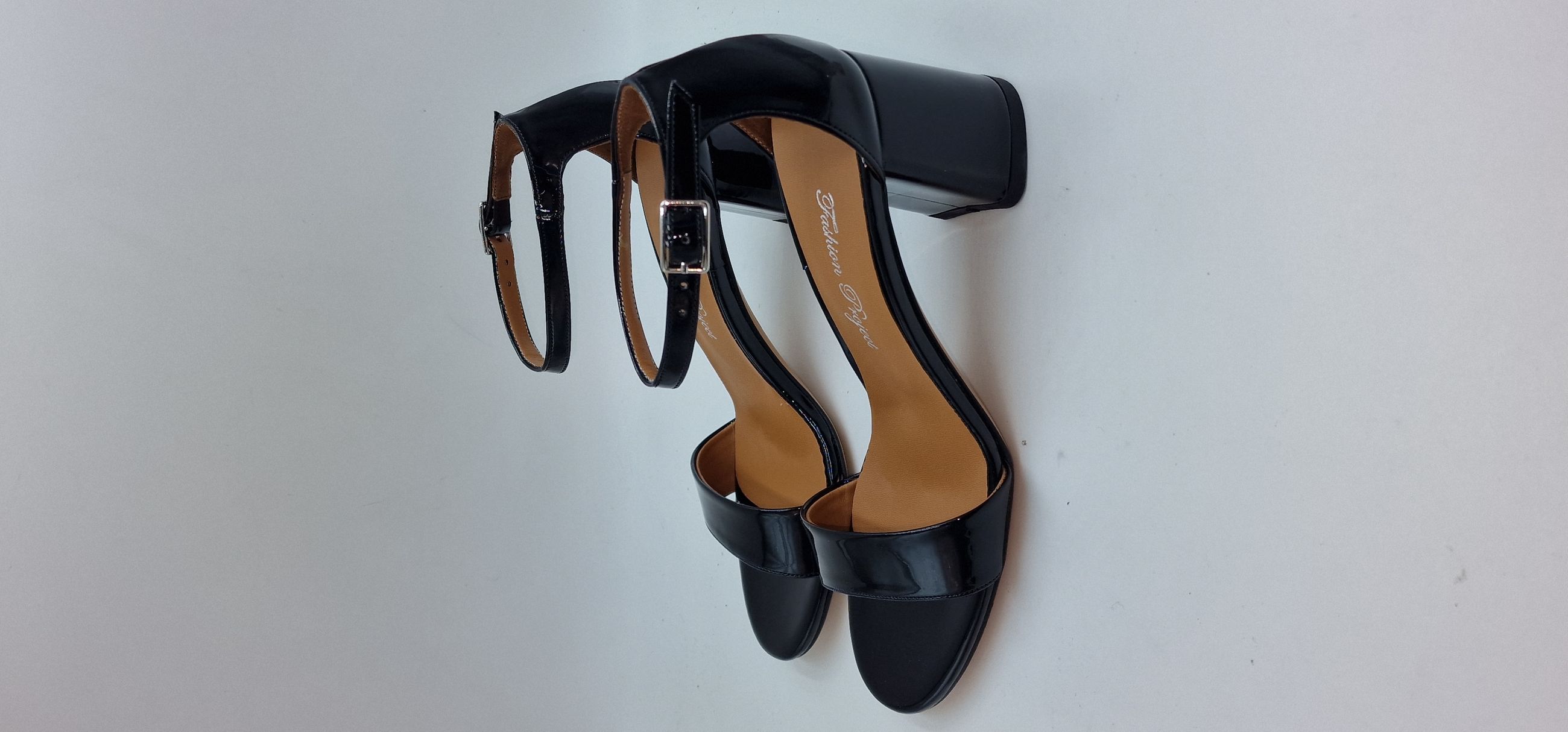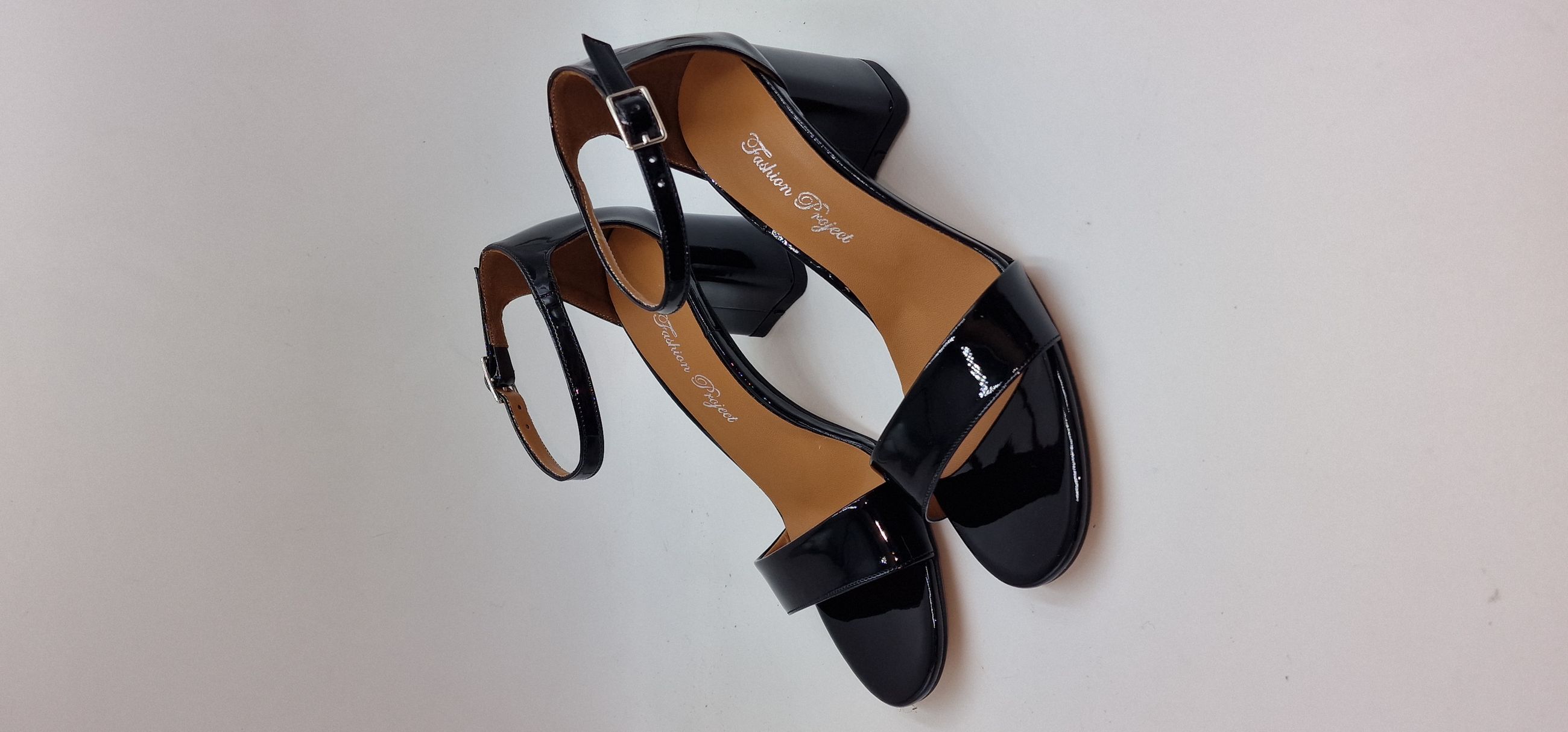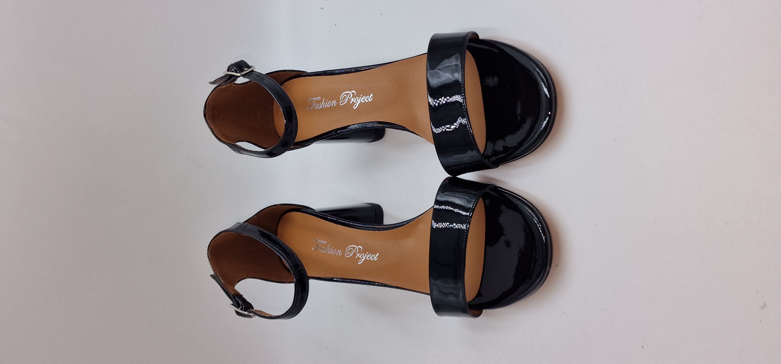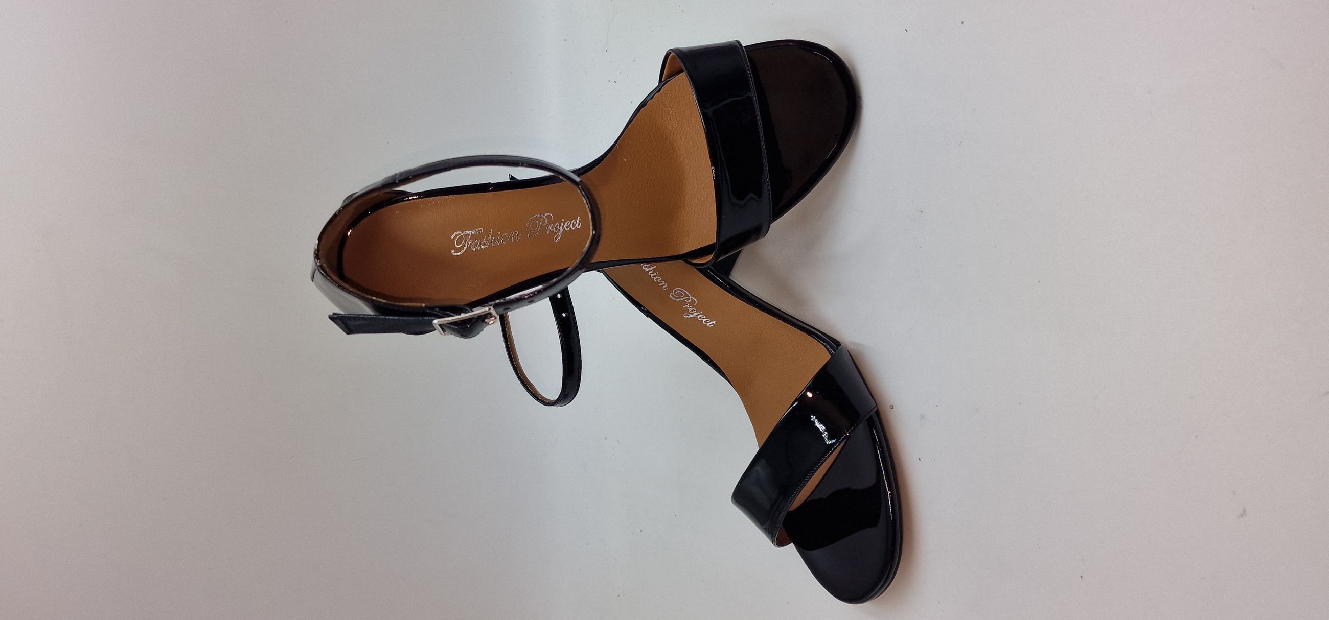 SANDALO IN VERNICE ECOLOGICA UNA FASCIA SULLE DITA, TALLONE CHIUSO, CINTURINO ALLA CAVIGLIA,