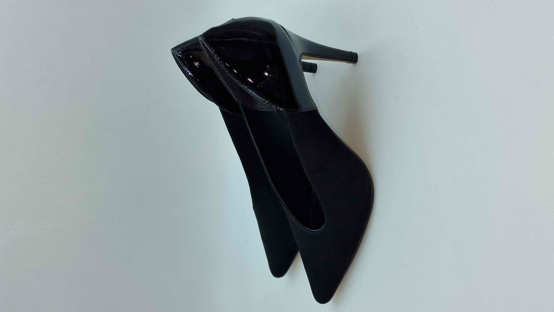 FONDO IN GOMMA, TACCO 8,5 CM FASCIATO IN VERNICE