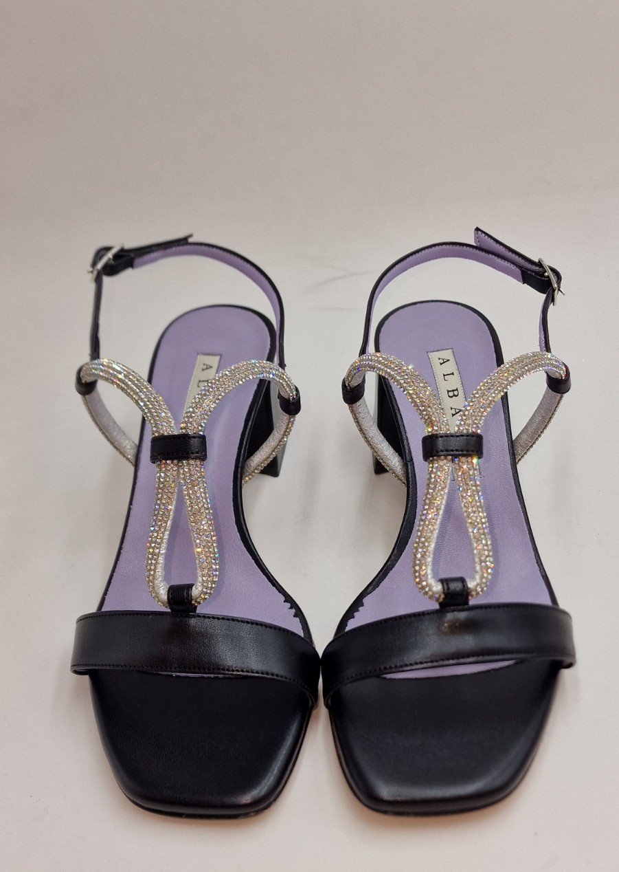 SANDALO IN PELLE ACCESSORIO STRASS,