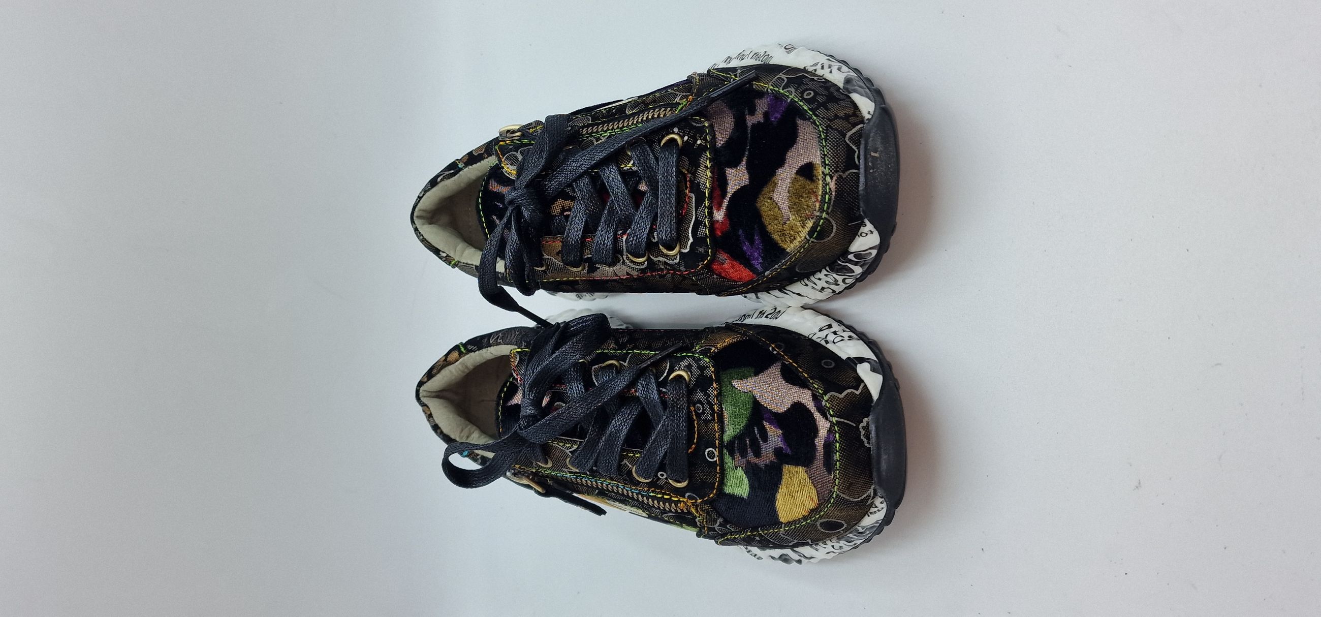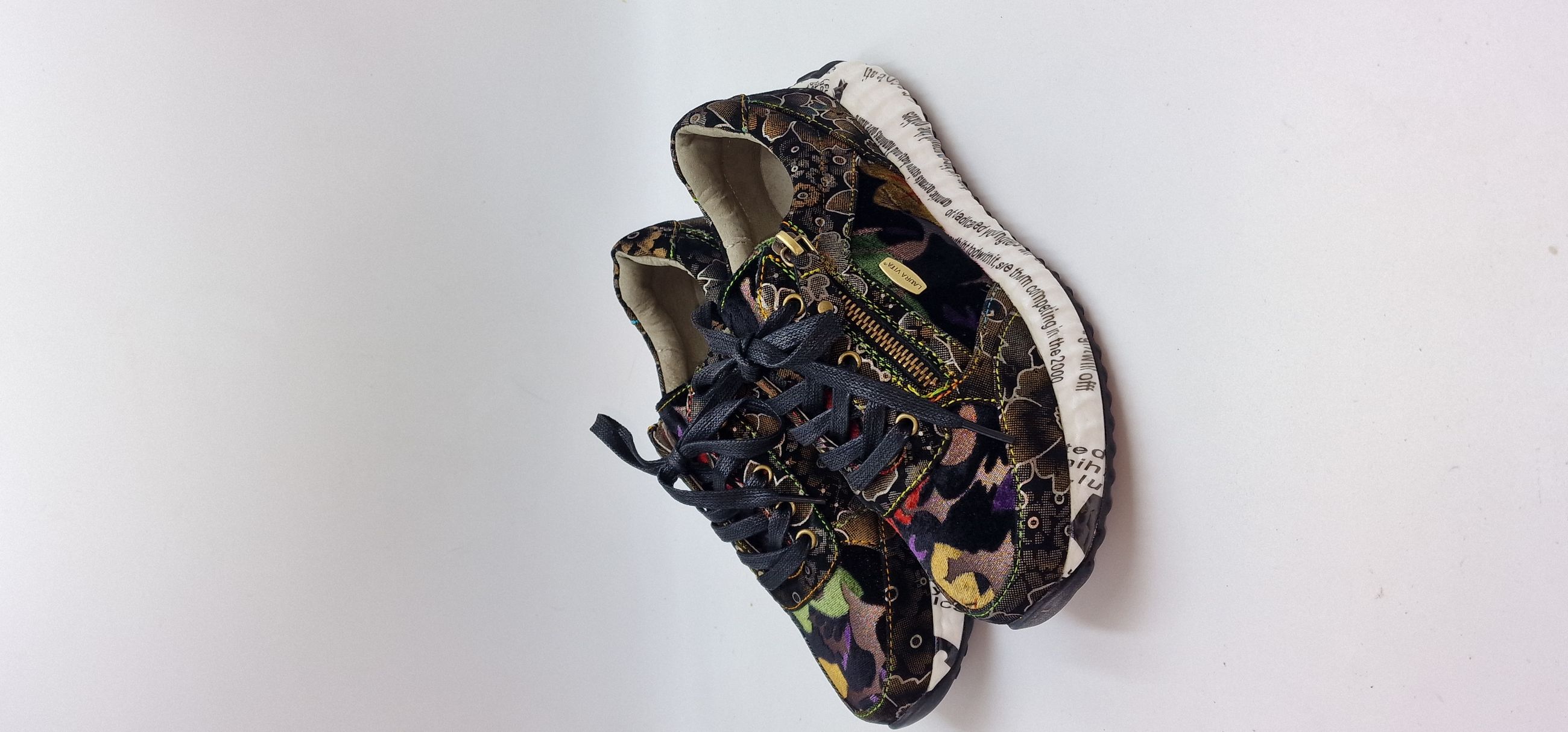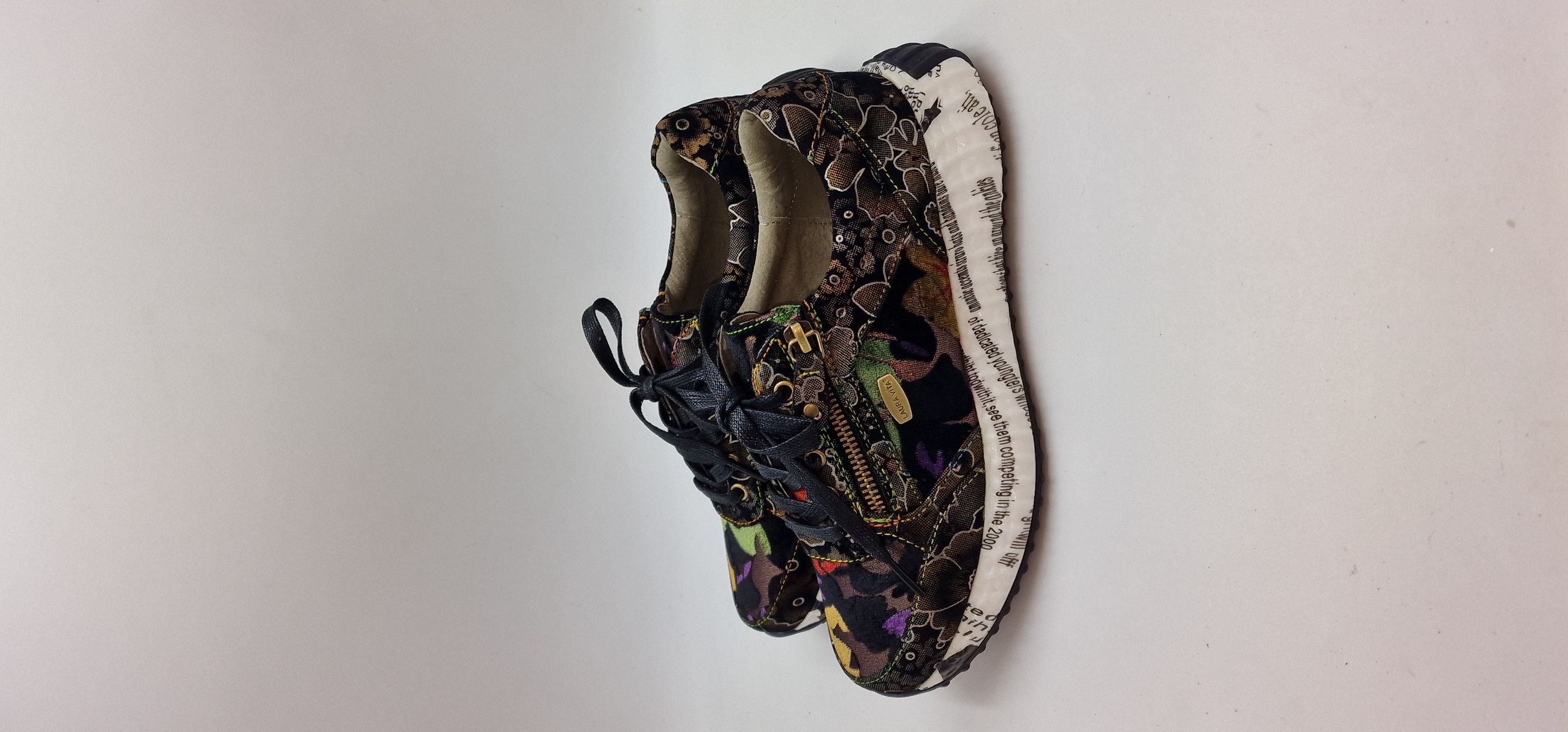 SNEAKER LACCI E CERNIERA LATERALE IN PELLE E TESSUTO STAMPA FLOREALE,