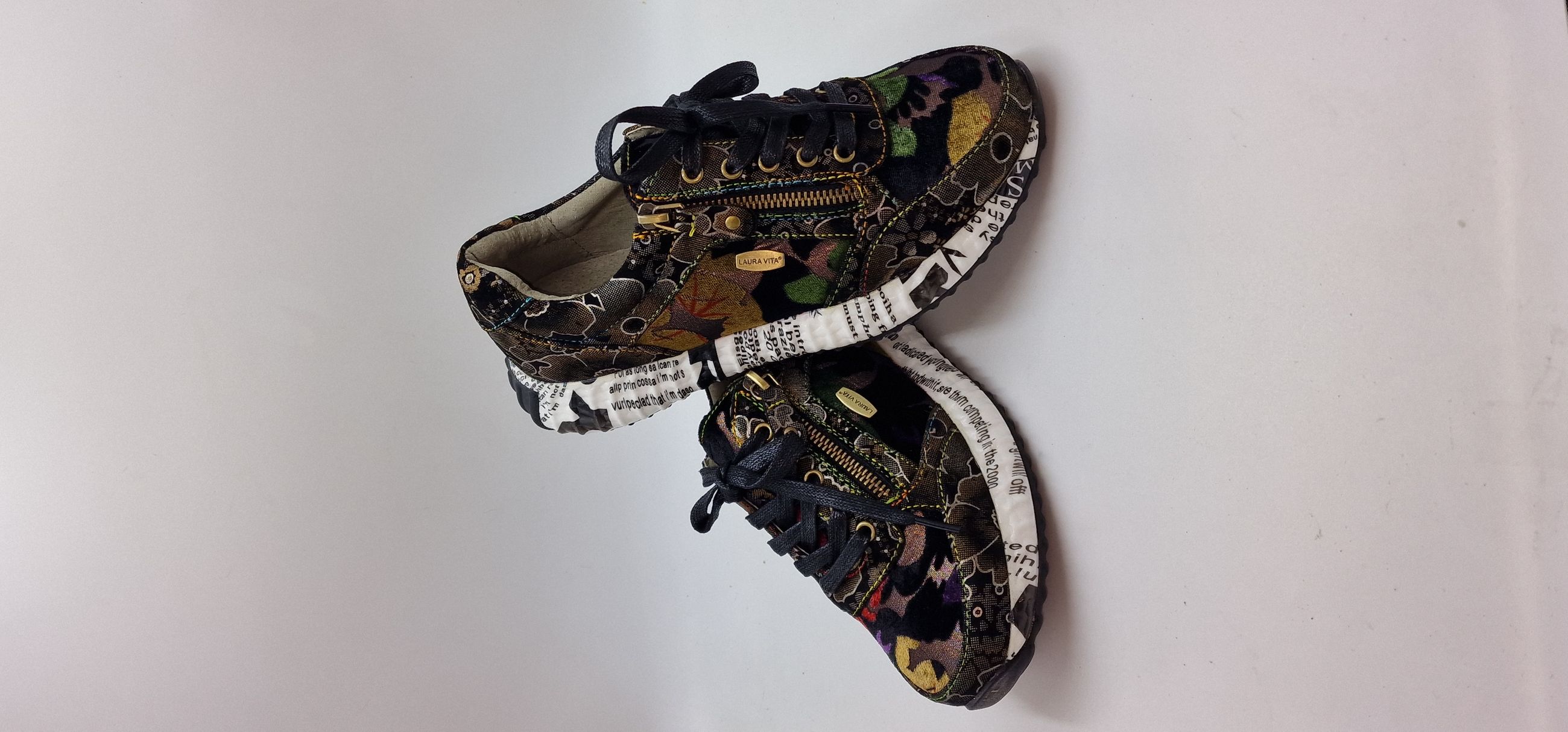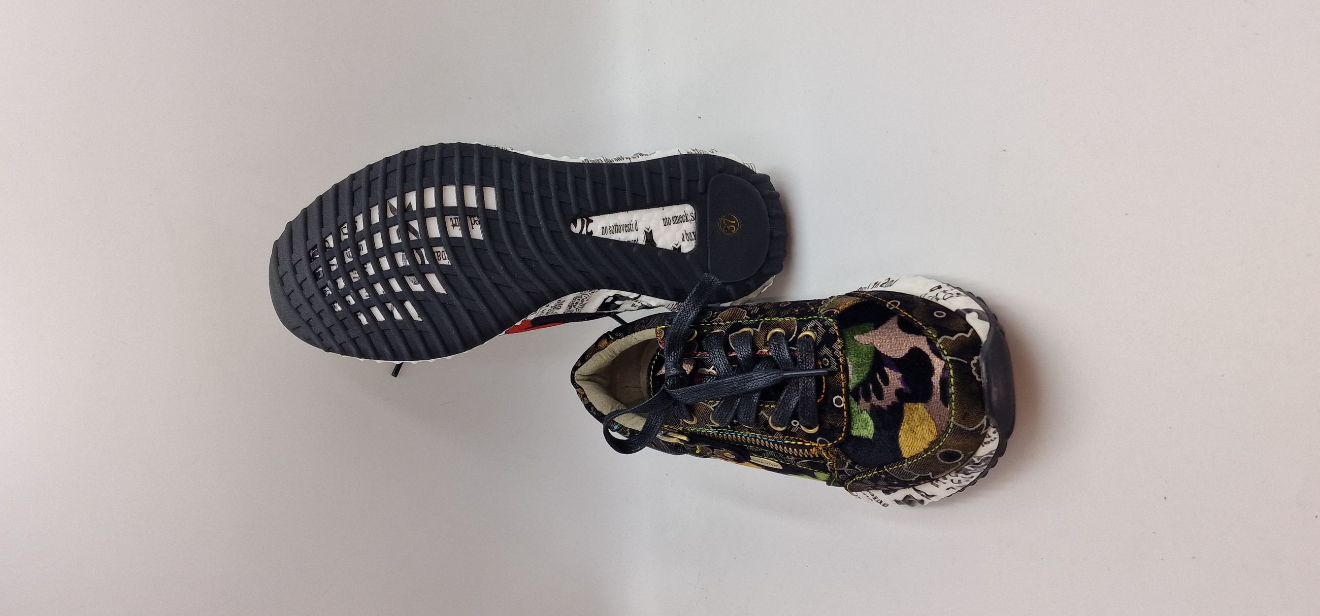 FODERA IN PELLE, FONDO IN GOMMA 3 CM STAMPA EFFETTO GIORNALE, PLANTARE INTERNO ESTRAIBILE