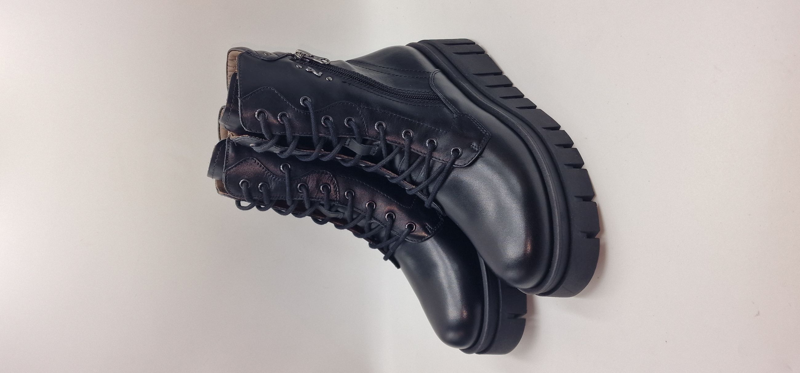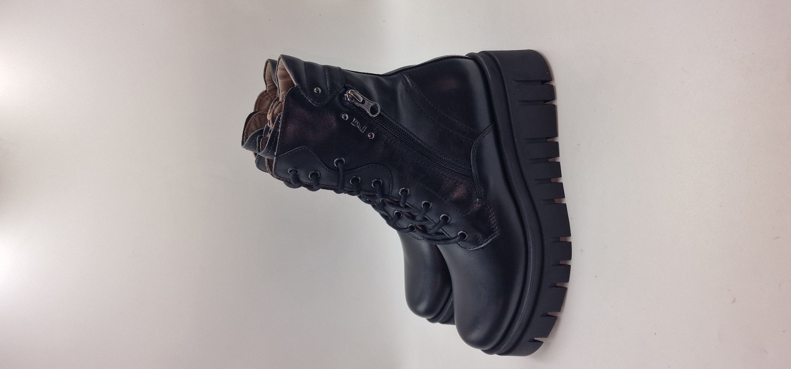 ANFIBIO IN PELLE, ACCESSORIO LATERALE, LACCI E CERNIERA,
