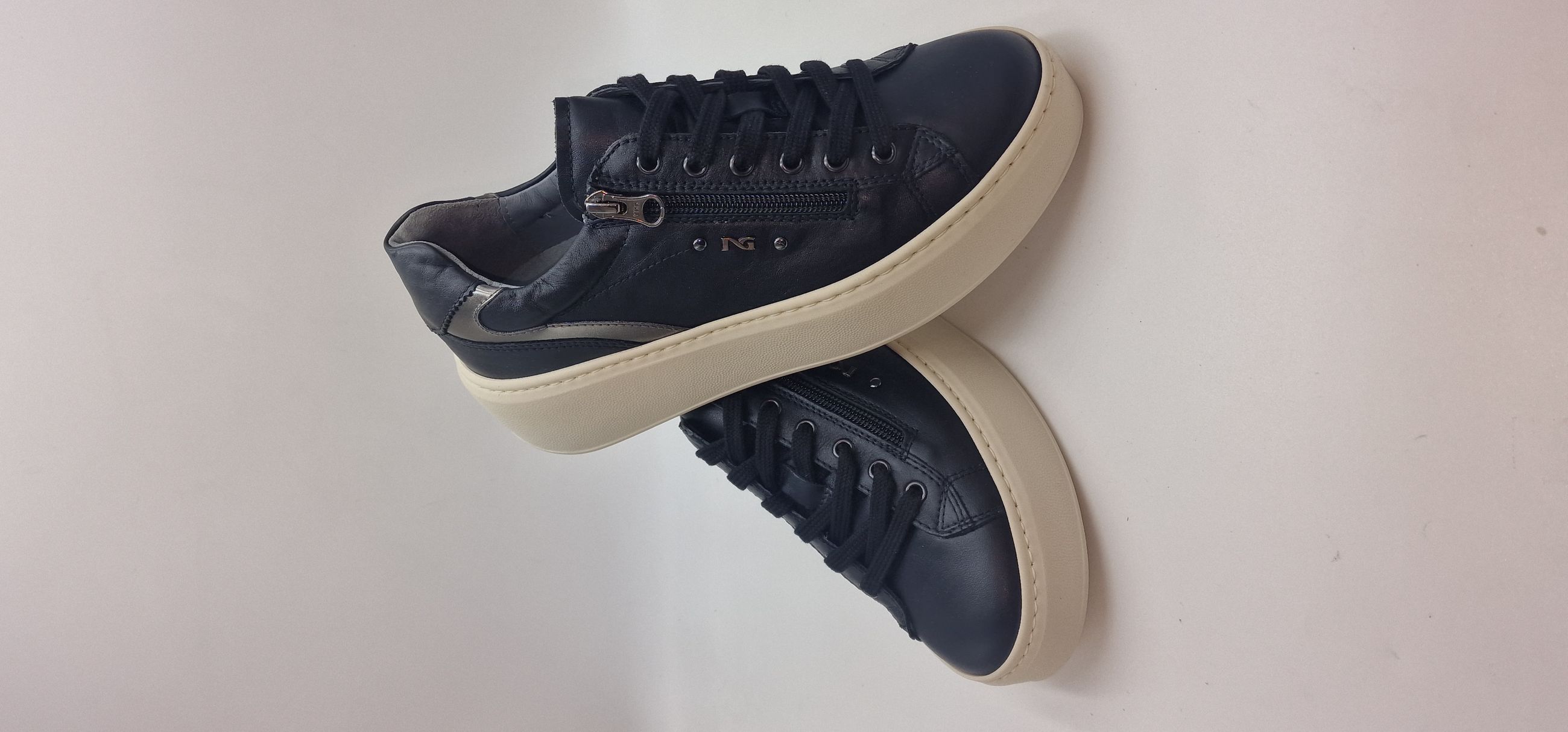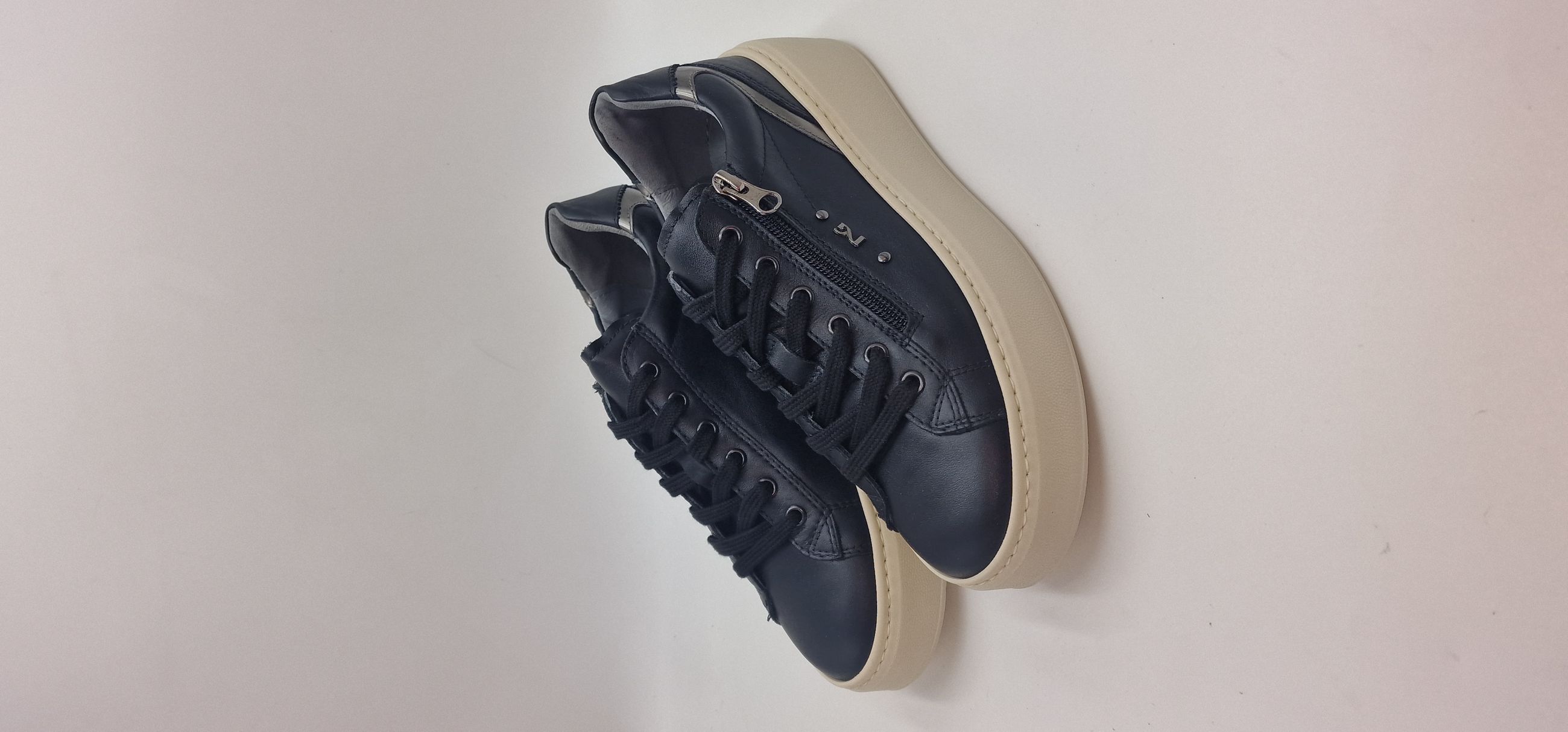 SNEAKERS IN PELLE, LACCI E CERNIERA LATERALE, FODERA IN PELLE,