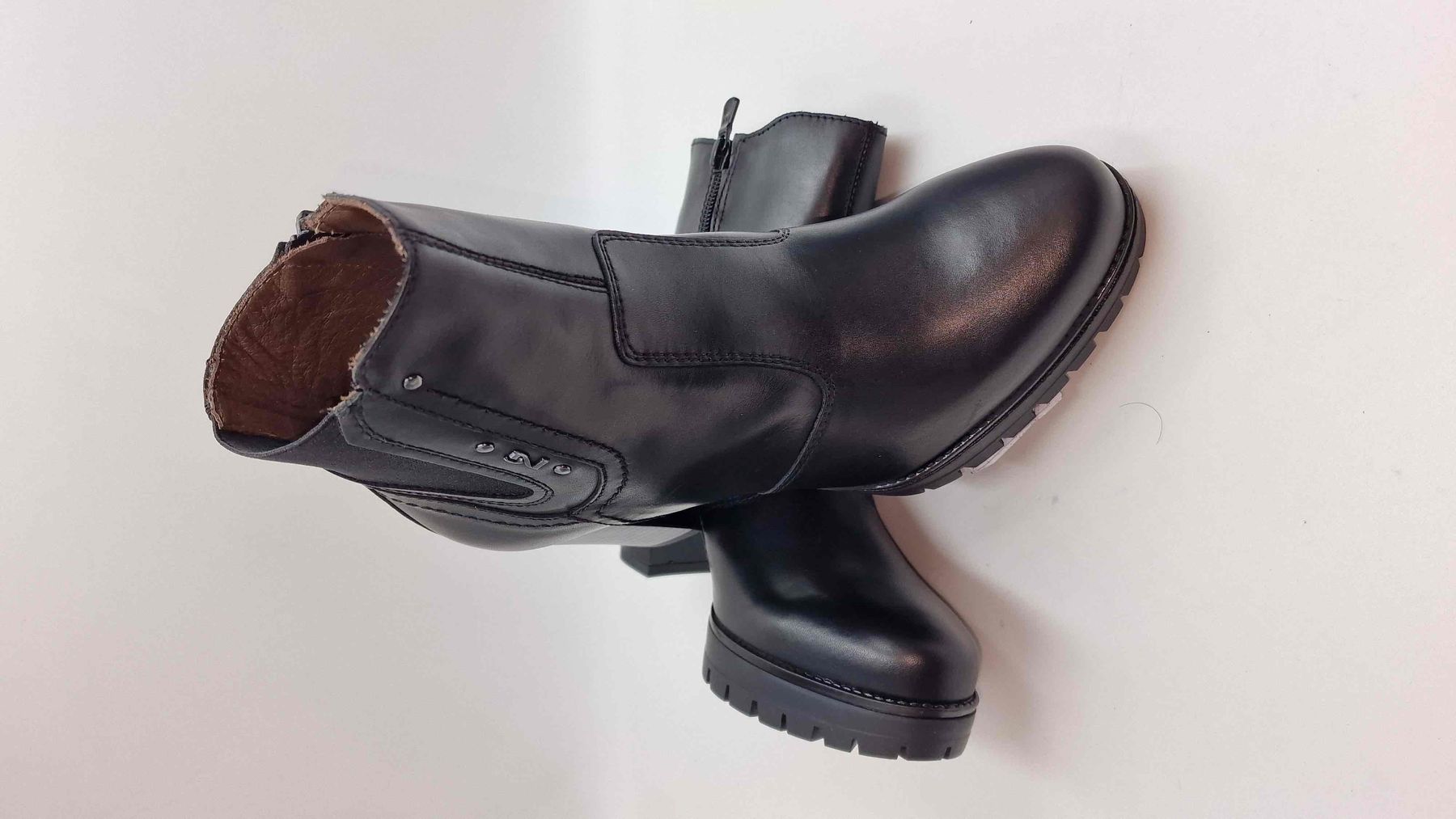 STIVALETTO IN PELLE, ELASTICO E CERNIERA LATERALE,