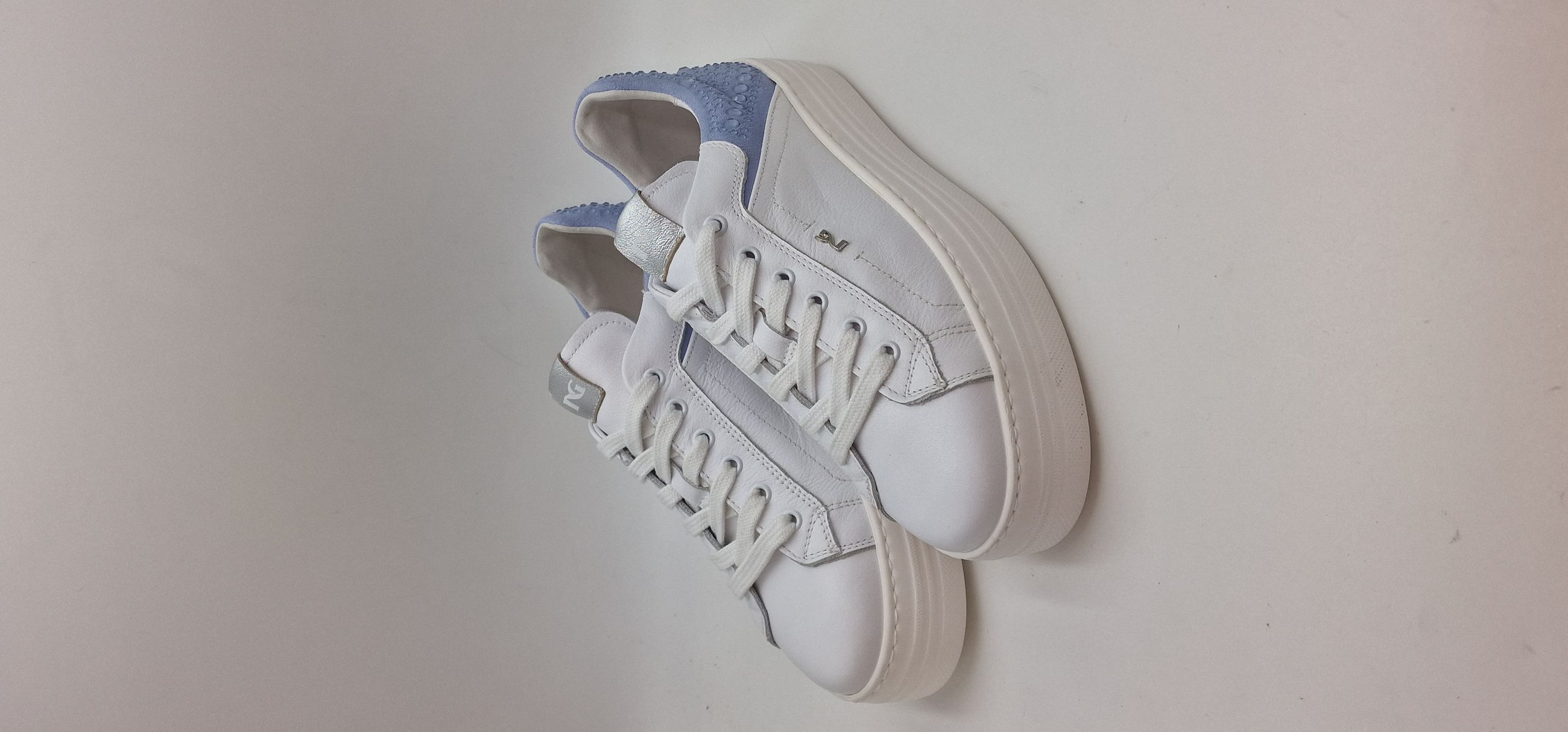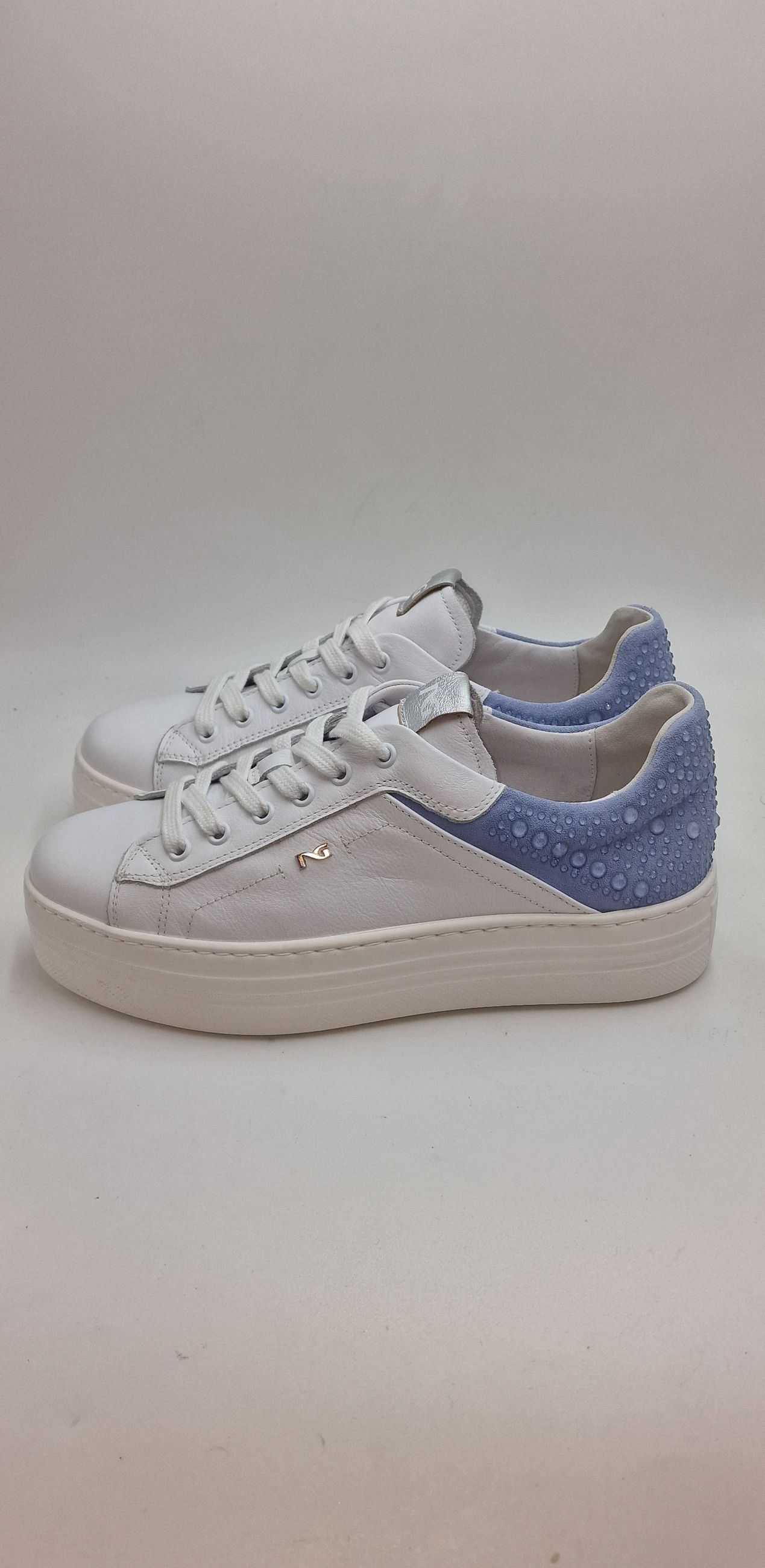 SNEAKER LACCI IN PELLE, TALLONE IN CAMOSCIO E STRASS TRASPARENTI,