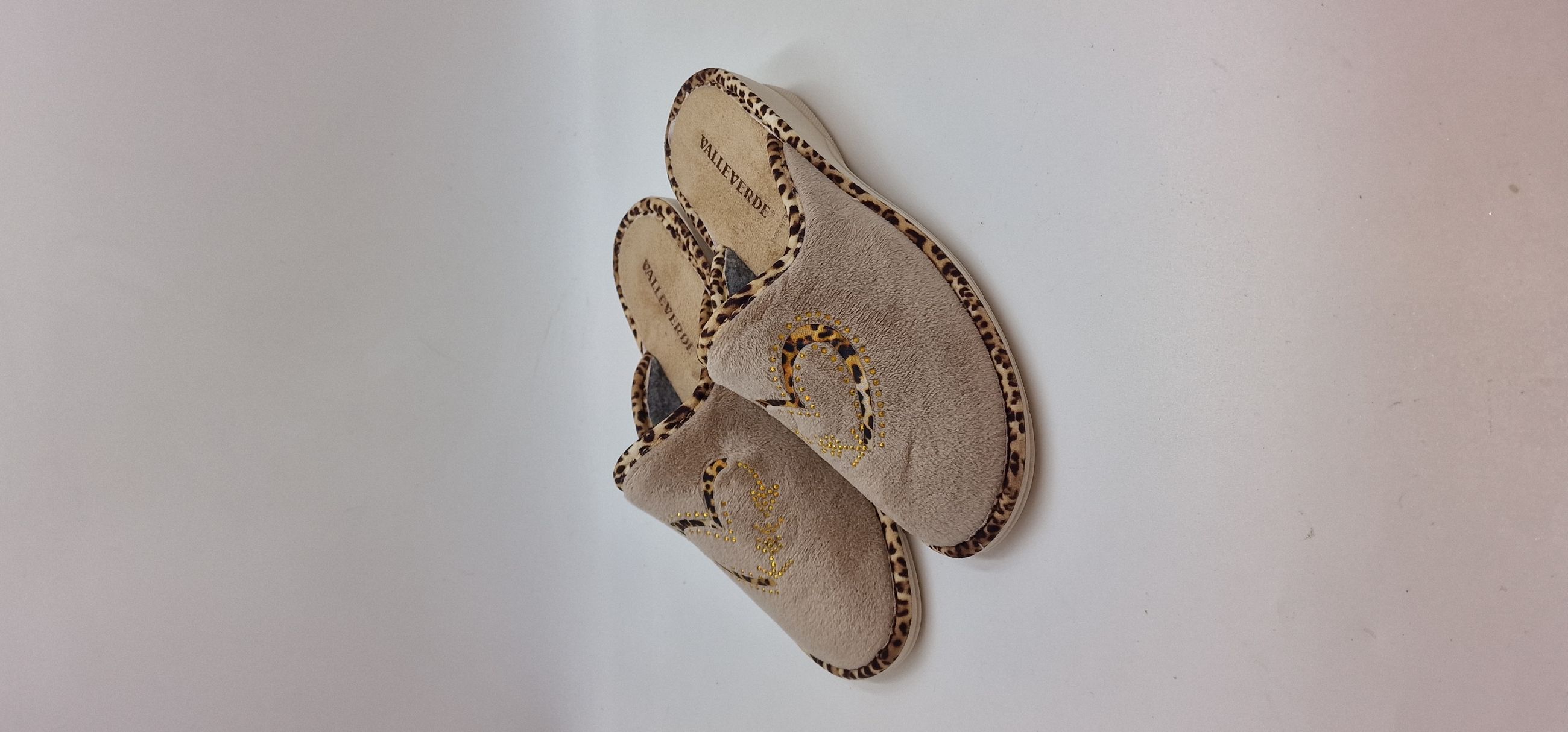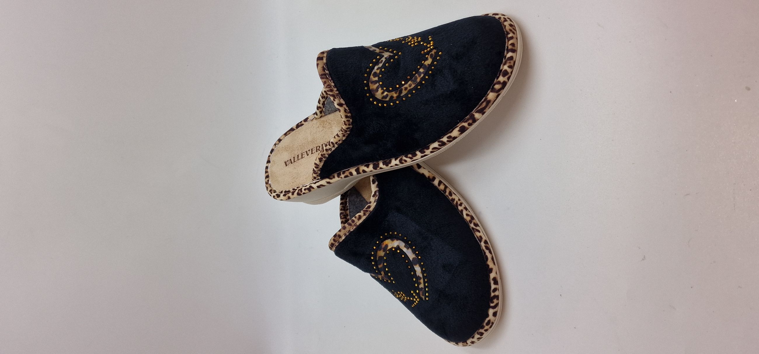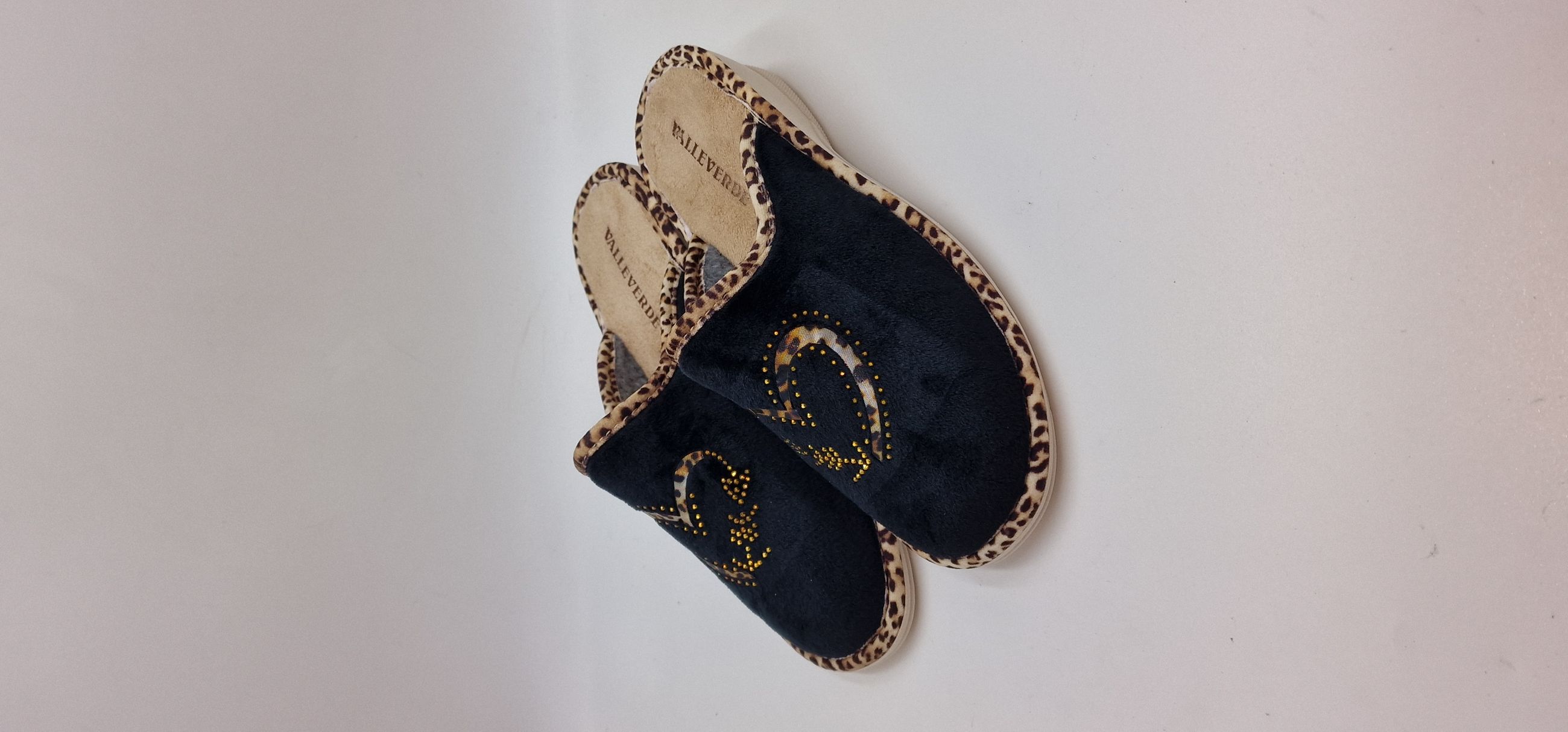 PANTOFOLA IN TESSUTO E STRASS, RIPORTO MACULATO,
